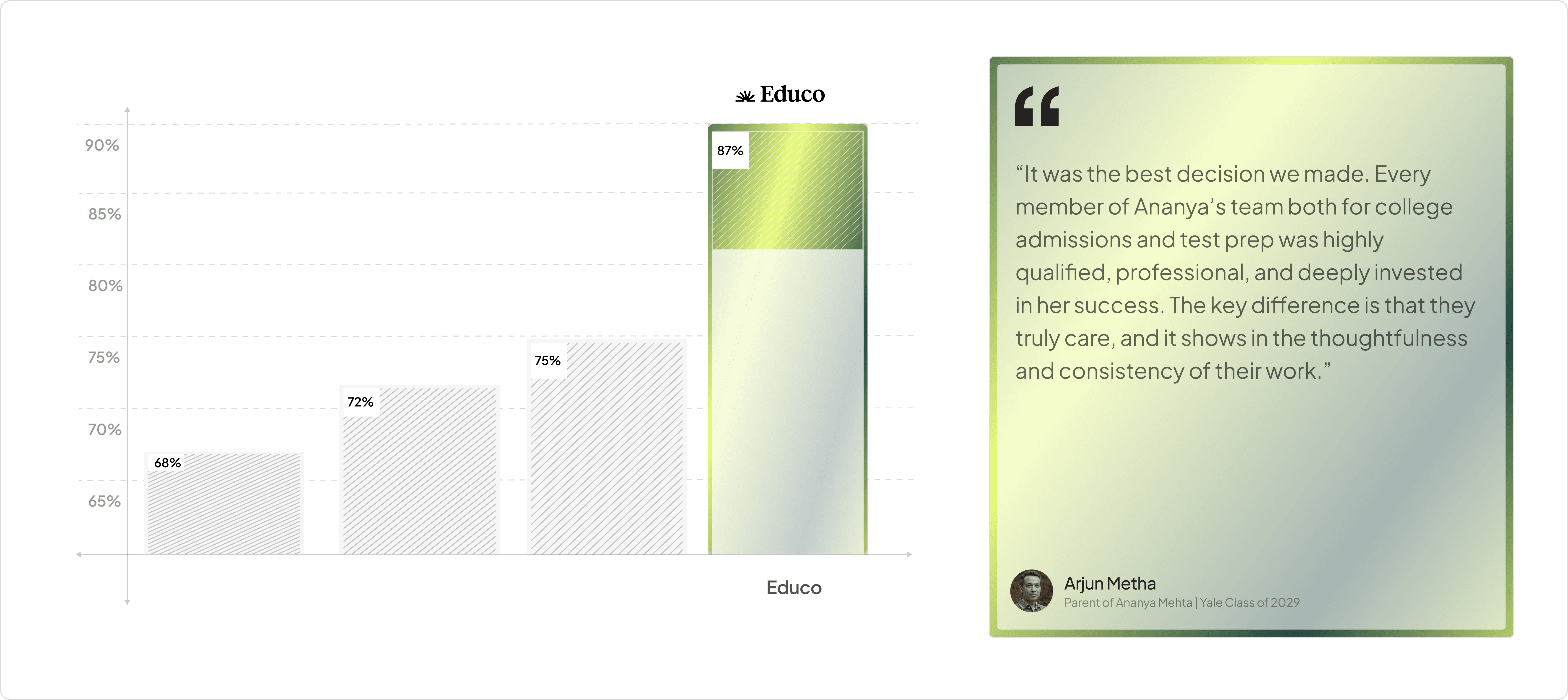 For most Educo students, 99th percentile scores aren’t wishful thinking. 87% ultimately meet or exceed their target score.